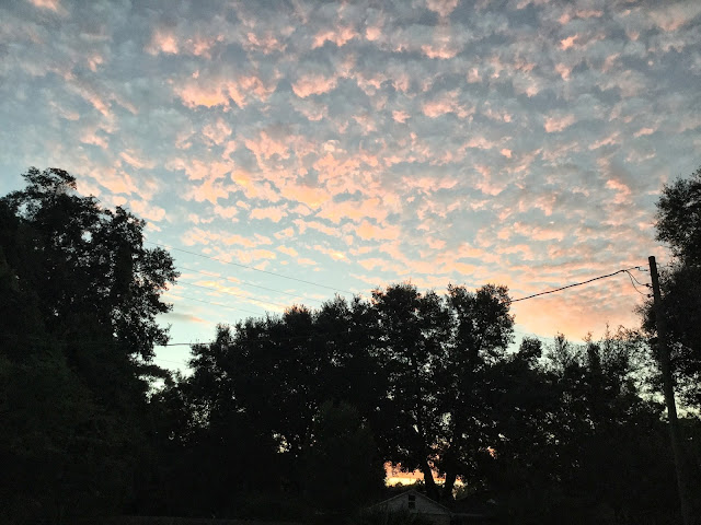 I was lucky enough to step outside my apartment just after sunrise. That particular day had a lovely sky covered in delicate wisps of clouds as far as the eye could see. The only thing that made it more beautiful was the soft pink rays of sunlight that rapidly began to define the vaporous sky.